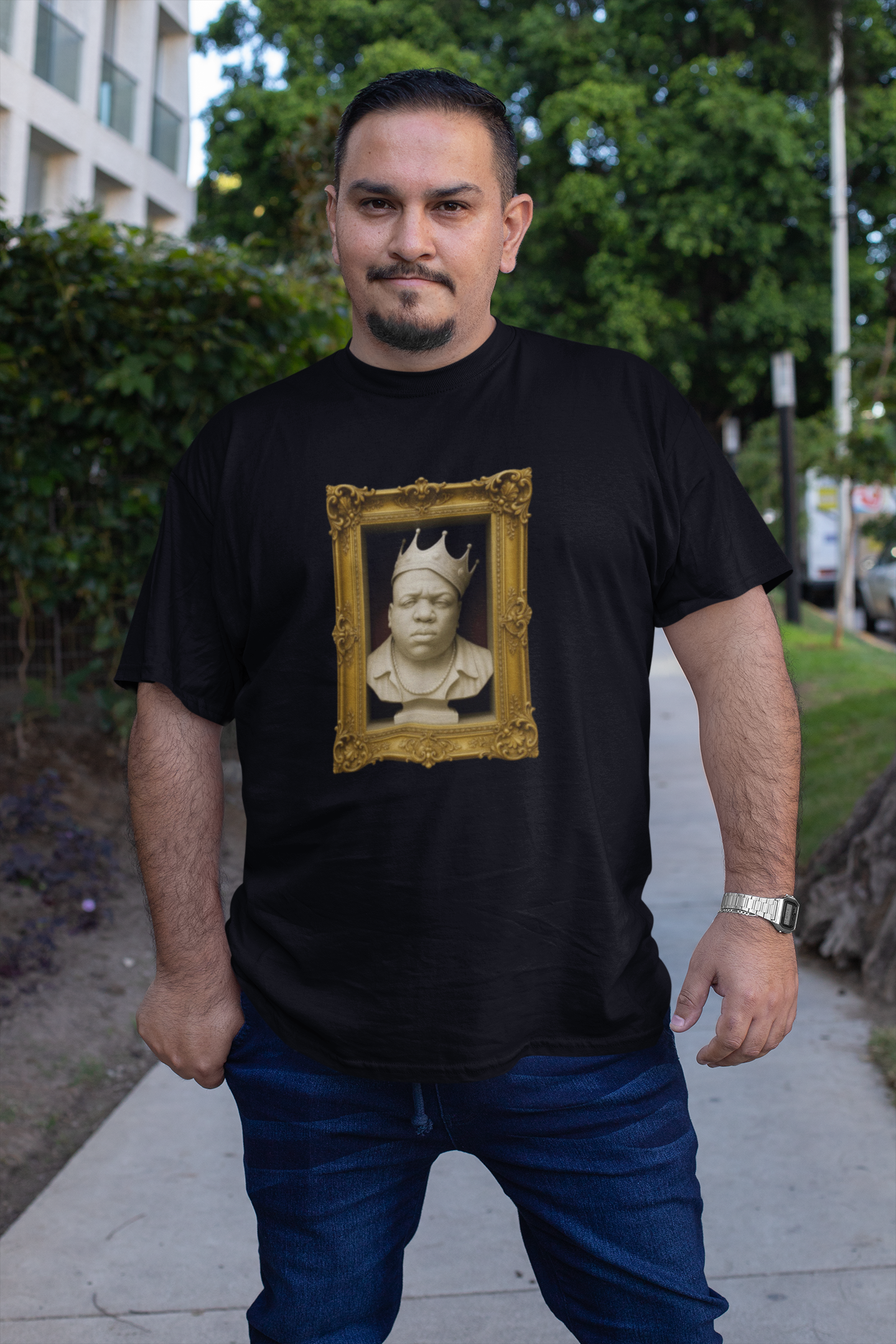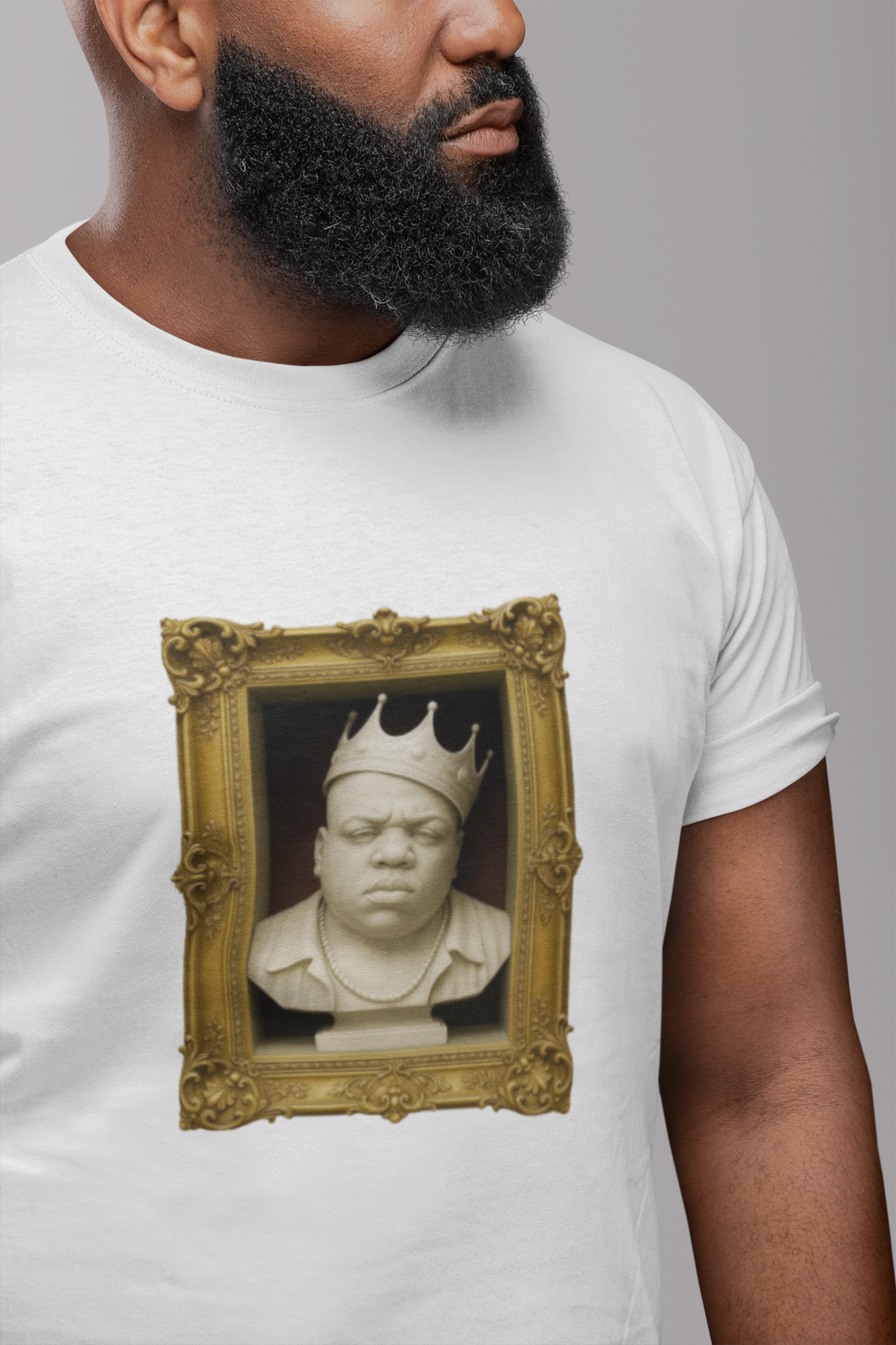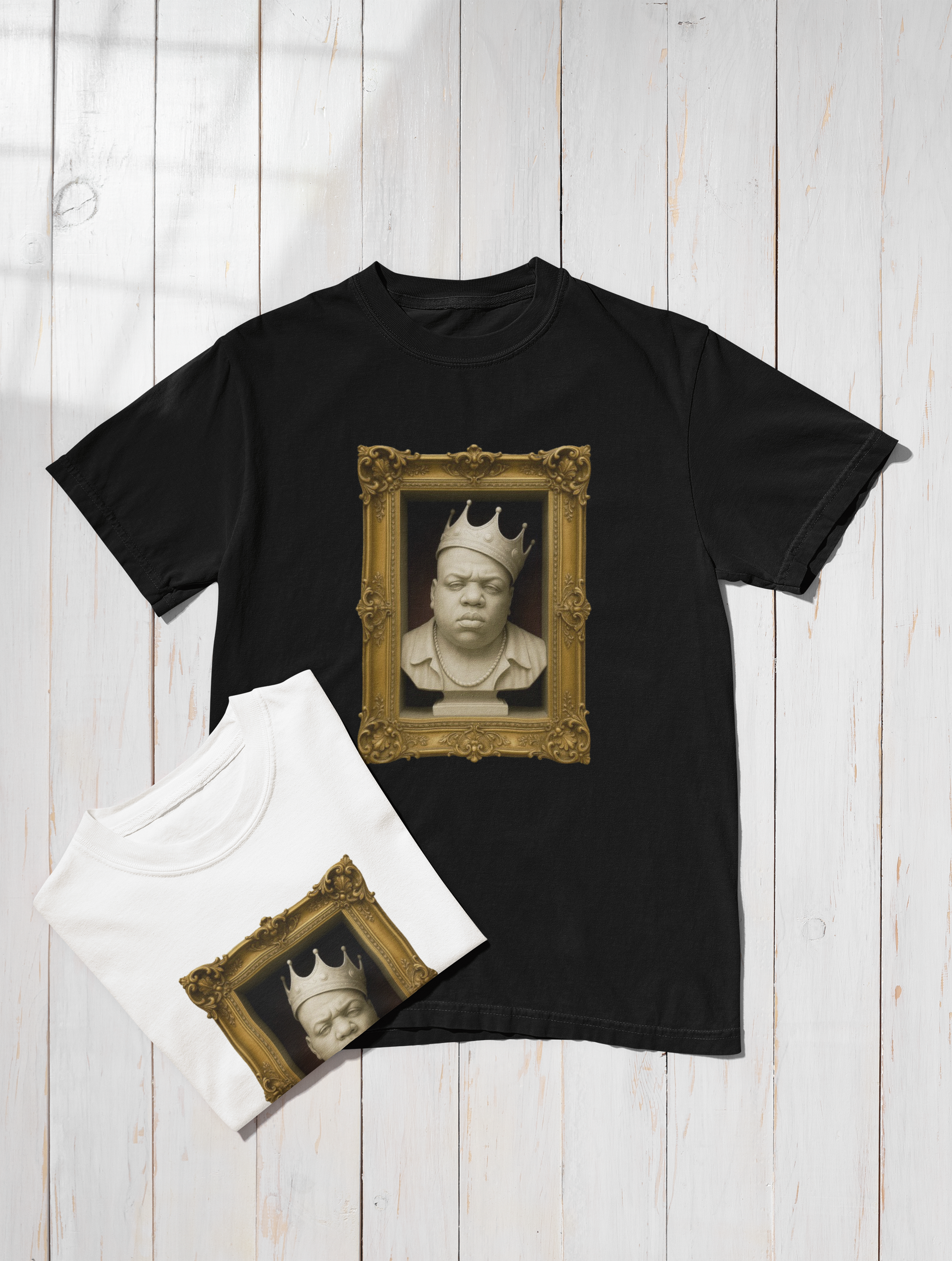 This one's heavier than stone. A marble bust of Biggie Smalls, frozen in time with crown intact. It's not just a tee, it's a monument to legacy, presence, and raw storytelling. Unbelievably soft shirt.